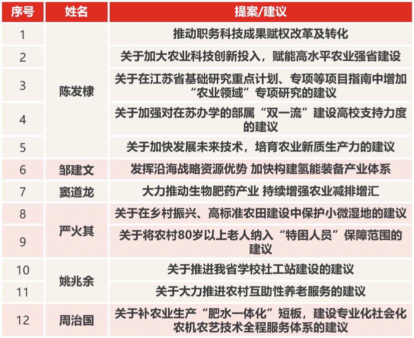 此外,围绕农业科技创新、基础研究、培育发展农业新质生产力以及加大对在苏办学的部属 “双一流”建设高校支持力度等方面向省政协十三届三次会议提交了多份提案。
