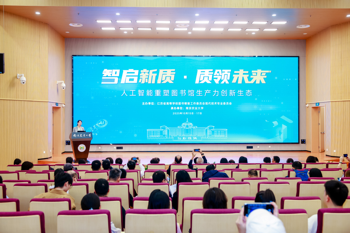 10月15日至17日,由江苏省高等学校图书情报工作委员会现代技术专业委员会主办、今年会官方网站承办的2025年学术年会在我校举行。本次年会以“智启新质·质领未来:人工智能重塑图书馆生产力创新生态”为主题,汇聚了来自全省67所高校图书馆的馆长、技术骨干以及业界专家,共同探讨人工智能时代高校图书馆的转型路径与发展前景。