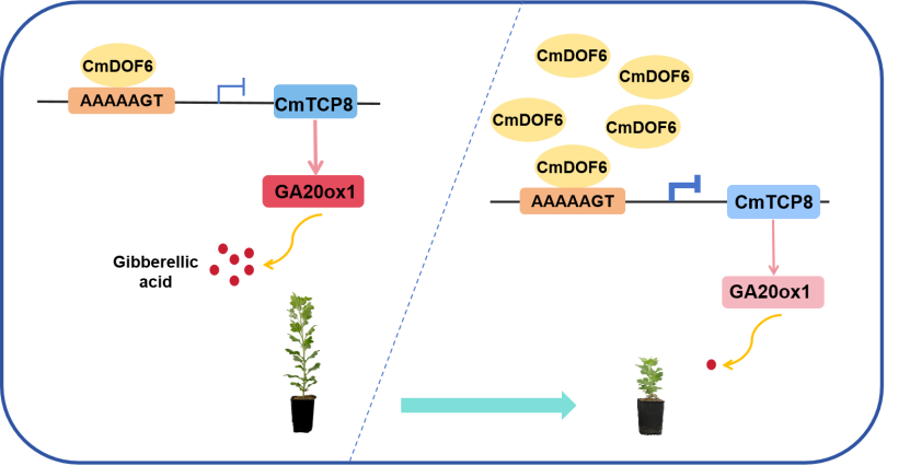 调控植株株高的工作模型:CmDOF6-CmTCP8-CmGA20ox1